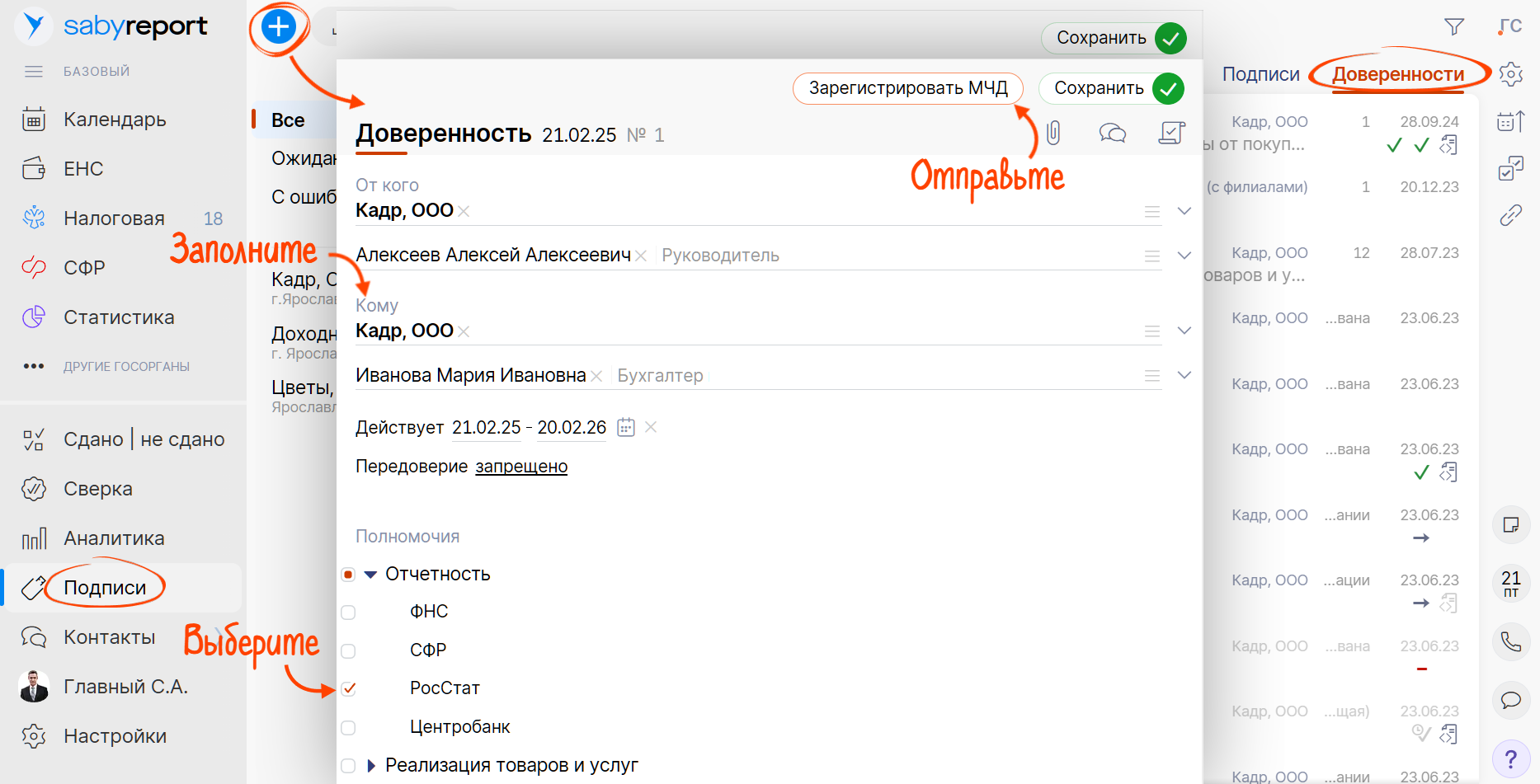 Зарегистрируйте машиночитаемую доверенность в Saby: